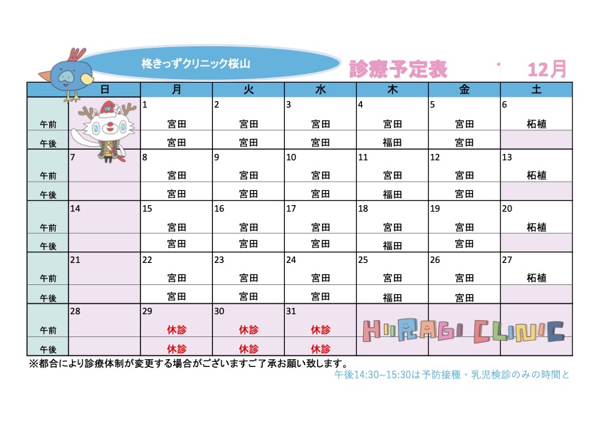 ※12月29日(月)〜1月4日(日)までは休診となります。2026年の診察は1月5日(月)から開始します。