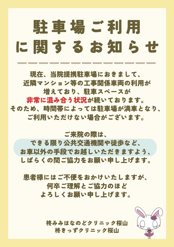 患者様にはご不便をおかけいたしますが、何卒ご理解とご協力のほどよろしくお願い申し上げます。